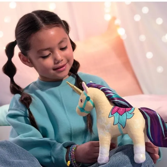Creiamo un magico rituale serale: Leaf accanto a noi, inventiamo insieme sogni da unicorno. Il suo corpo morbido rende ogni notte sicura e piena di meraviglie.